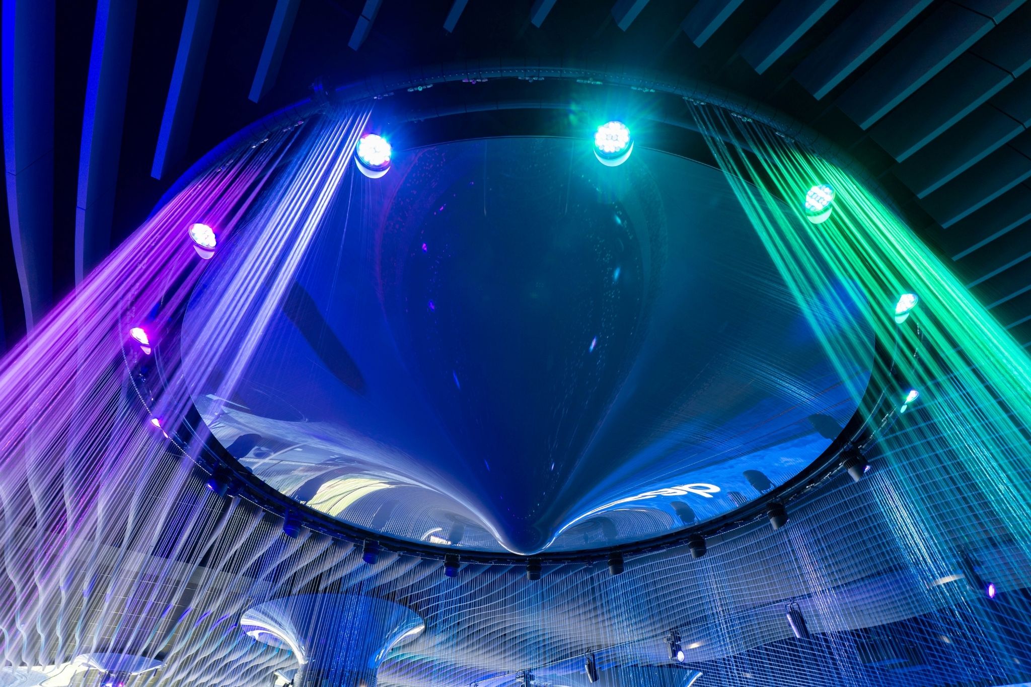 The LED screen not only aesthetically enhances the interior of the space, but also creates a stunning visual experience. It currently shows 3D-like content and specially made visuals that fit the screen’s size and shape.