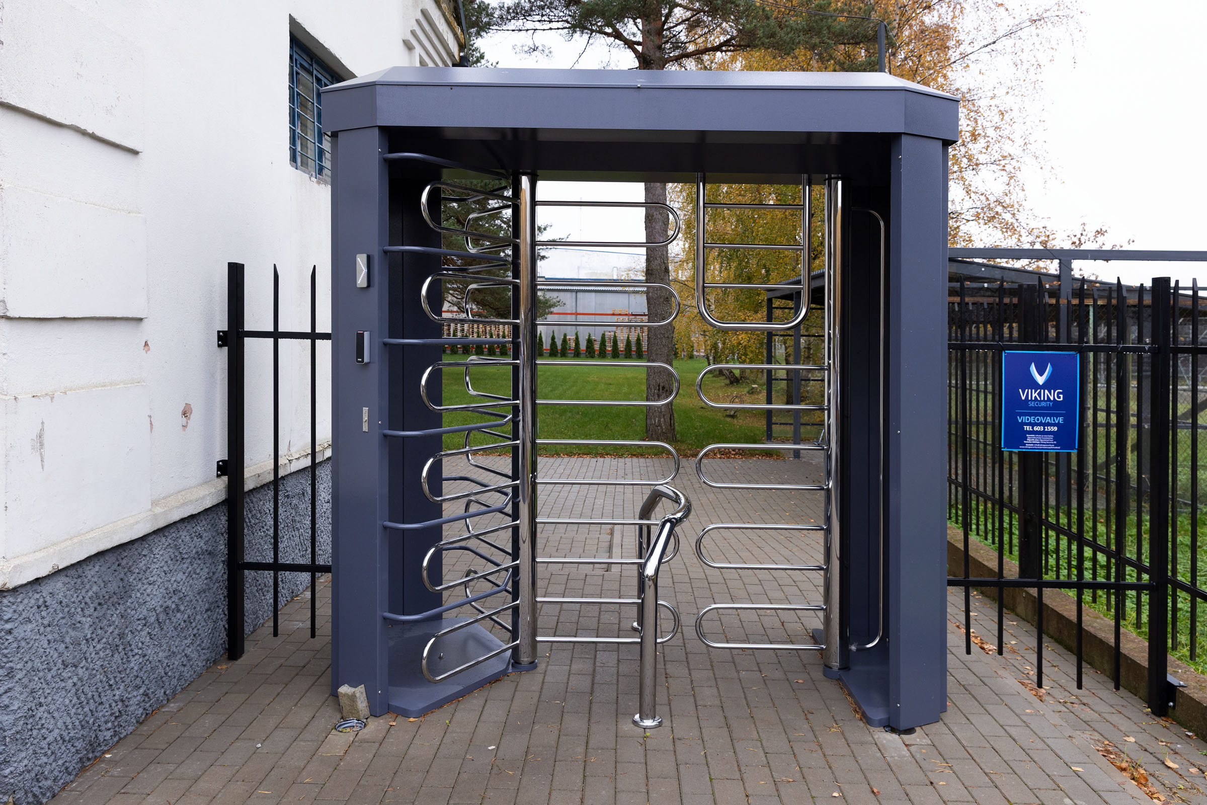 The turnstile installed by Hansab is designed for outdoor use and operates reliably in temperatures from -20 °C to +50 °C. All electrical components are protected against moisture and dust, while additional heating and backup power ensure continuous operation even during cold weather or power outages. A motorized rotation mechanism provides smooth access, and an LED indicator clearly signals when entry is allowed.