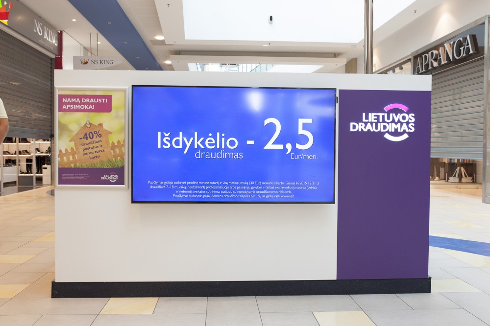 The digital signage network is being used by the insurance provider to display engaging, high resolution content on a series of ruggedized displays installed in strategic locations in busy shopping malls throughout Lithuania. The digital signage network is intended to stand out against billboards and printed posters by providing busy shoppers with a memorable and engaging experience.