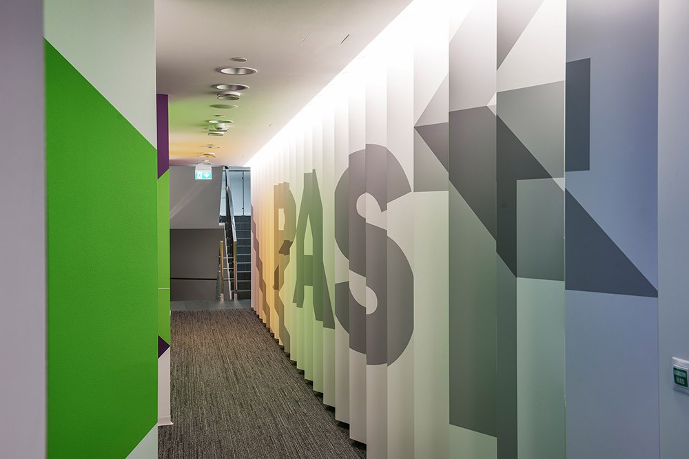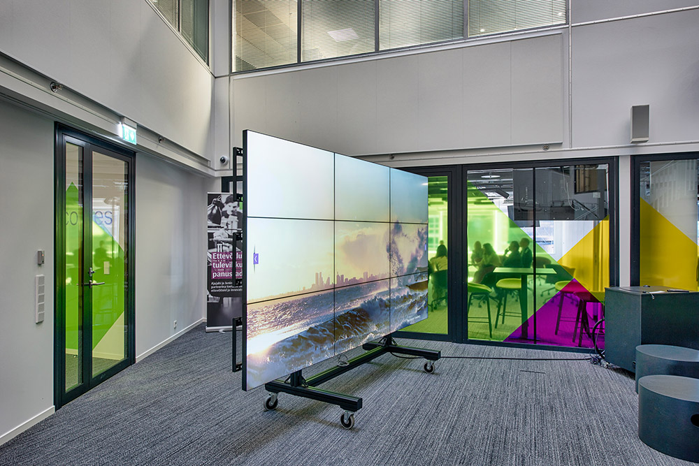 Inside smaller seminar rooms, we installed Samsung's 55“-65“displays and next to seminar rooms we installed 22“ displays on the walls to show the information about the event in the room. The content of the displays can be managed with Samsung MagicInfo S software. In the "Timeline" corridor we installed 55" touchscreen display and Samsung's tablets on the walls.