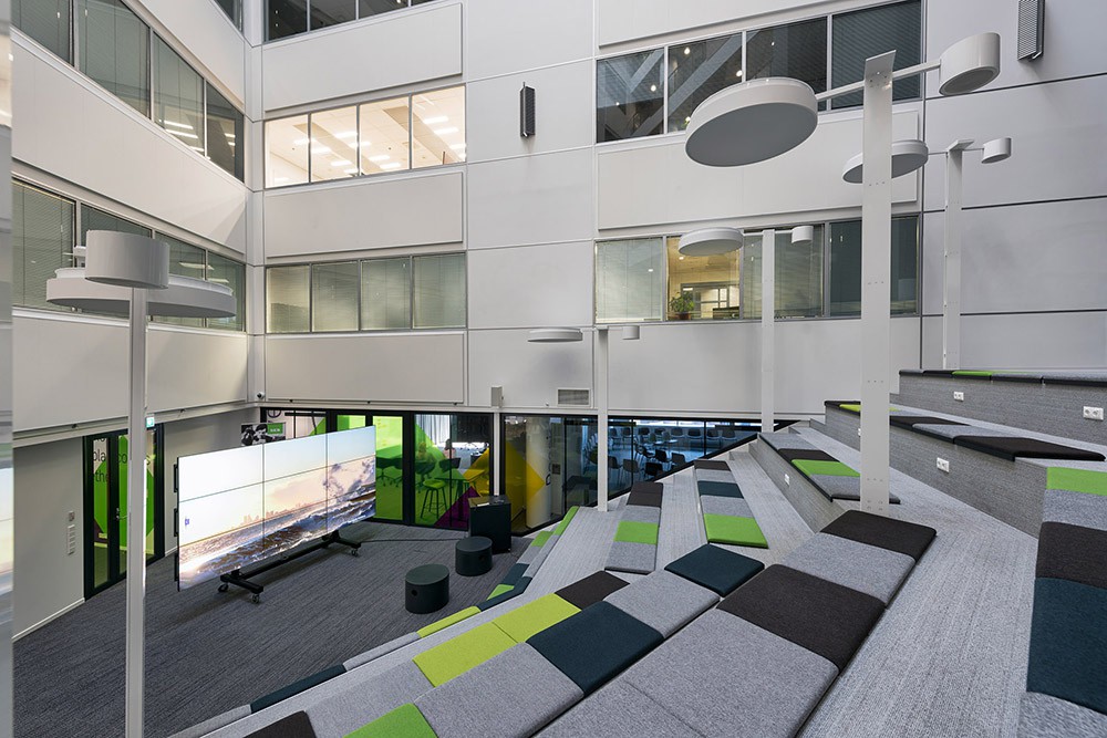 The amphitheater-style room showcases a large video wall, which is made up from 9 Samsung 55“UHD LED displays. Featuring an ultra-narrow 3.5mm bezel-to-bezel design format, which is the slimmest bezel in the video wall industry, the display creates a virtually uninterrupted viewing experience to keep audiences focused on content rather than the display itself.