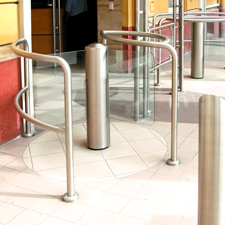 On receiving a signal from the access control system or pushbutton, the unit will unlock and be in a state of readiness for use. On the paddle receiving pressure from the user i.e. push to start, the motor will take over and drive 120O to its next home position. Should the wing meet any resistance it will stop and nudge forward. If obstruction continues the unit will alarm and free wheel. An Auto-Reset will reestablish control. Should an attempt be made to tailgate the unit will lock. The Auto Reset will re-establish control..