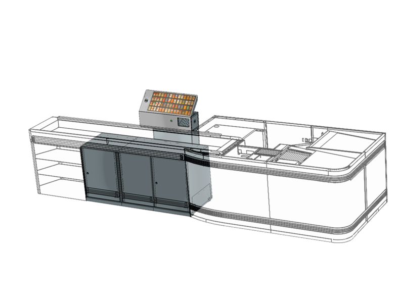 - Optional product dispenser set-up: merchandise is released to the customer or to the cashier