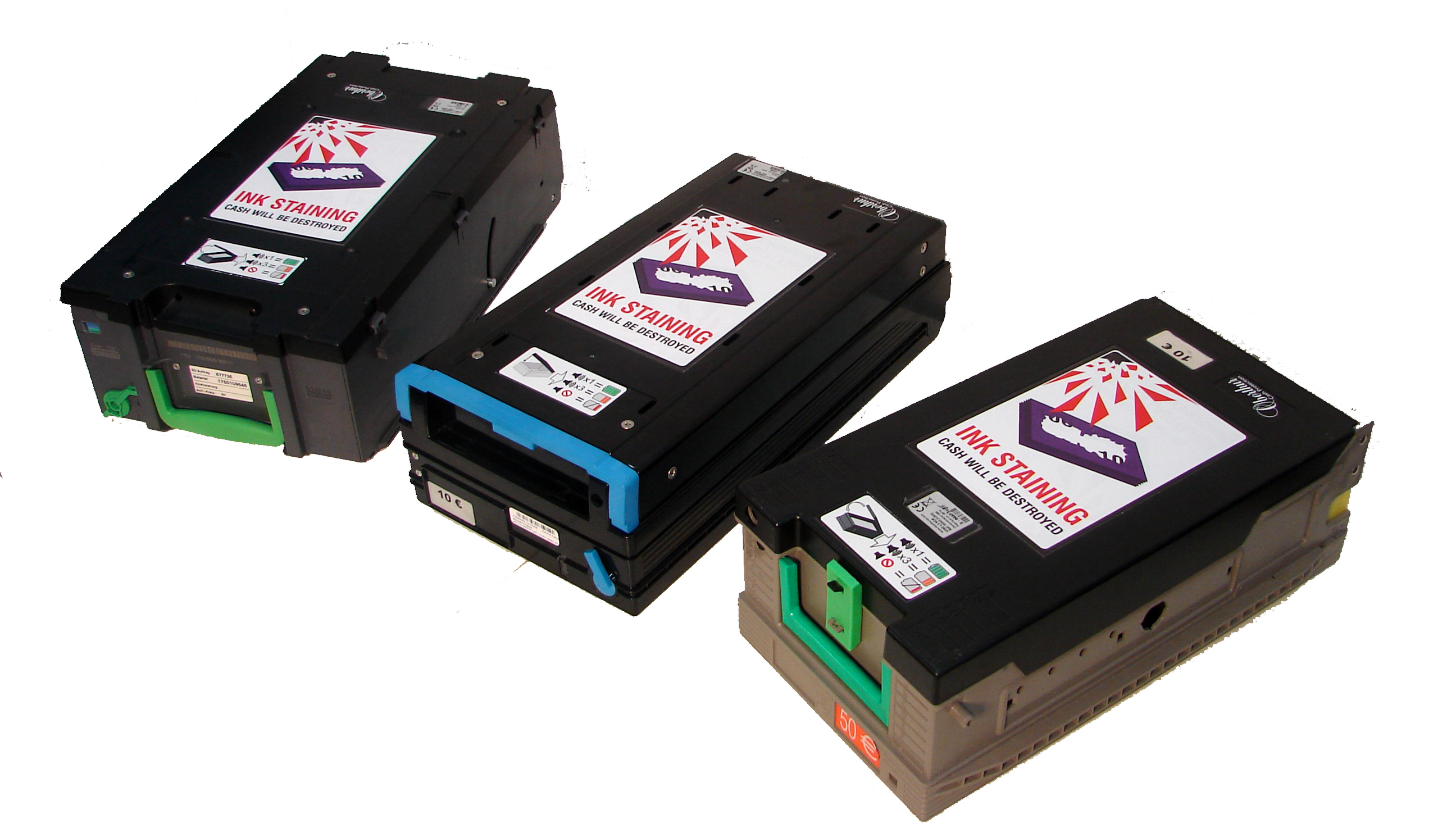 ICSD (In-Cassette Staining Device) L3 protects the funds inside of the ATM against ATM-related physical attacks: ram raids, break-ins, burglaries, robberies.