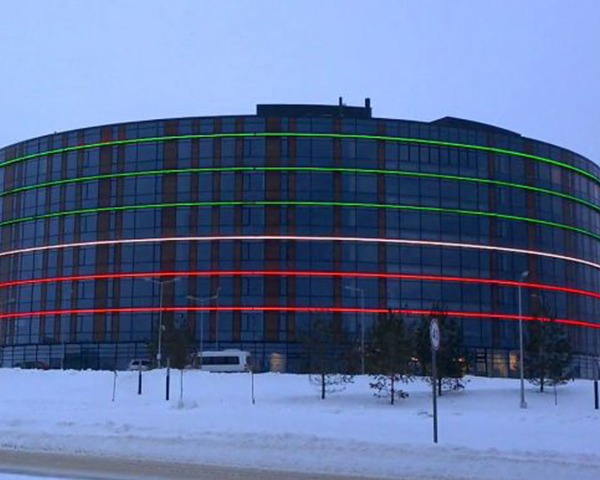 Hansab offers Media Light; an amazing lighting decoration product meant to use on high glass buildings but it can be also adjusted to any other preferred architectural objects. The vertical and horizontal installation of Media LIGHT will maintain the brightness and best performance you desire, without any cables hanging over the display. Media LIGHT solutions are available in all colors which supports transparency, adjusting the color to your building.