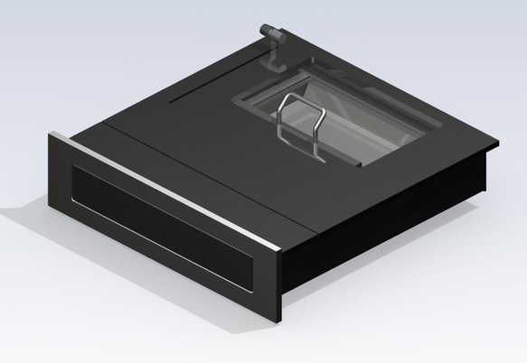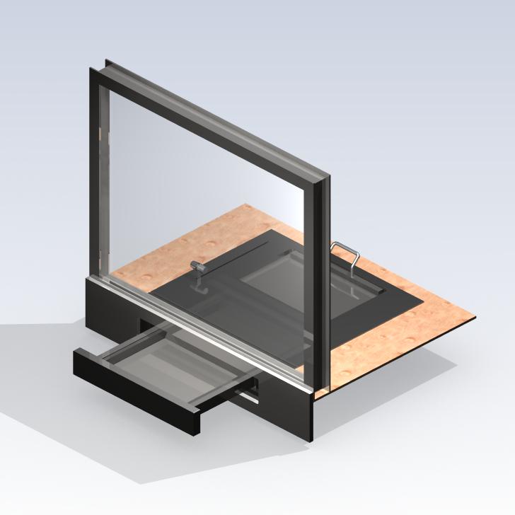 - Execution: Outer blind and inner covers in RAL 9006 white aluminium, tray in stainless steel, casing RAL 9005 black. Other colours or blind in stainless steel on request.