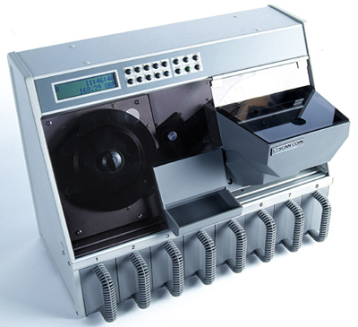 The SC 22 coin sorter is a compact and light performer. It features SCAN COIN’s unique sensor technology and offers outstanding accuracy combined with reliable functions in one, small package. A skilled best-seller The SC 22 coin sorter is popular worldwide for its superior technology in combination with its small size and easy operation. The unit features automatic rejection of foreign and damaged coins, as well as programmable batch stops. It sorts up to 8 coins and counts up to 32 coins in three different counting modes.