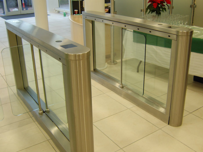 Passage in both directions electronically controlled. The SpeedStile FL is available in Normally Closed (N/C) mode and it will only open on acceptance of an authorised signal. On receiving a signal from the access control system, or push button, the panels will open. If an unauthorised person tries to tailgate or attempts to enter from the opposite direction, the system detects the unauthorised passage and activates the in-built alarm system.